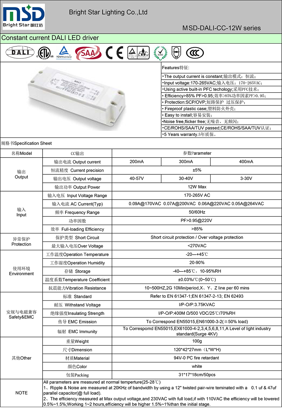 DALI恒流調(diào)光電源12W 300mA